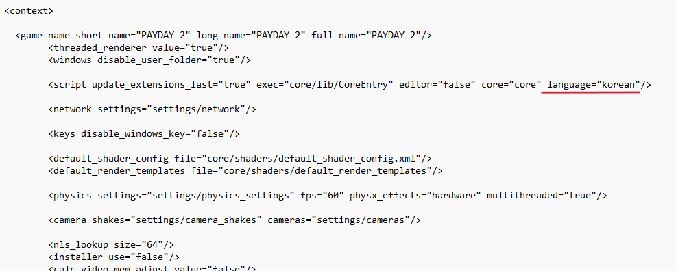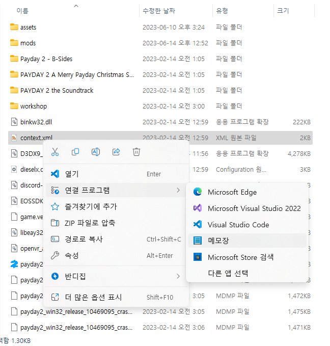 1. 기본경로 : 에픽 : C:₩Program Files₩Epic Games₩Payday 2₩mods 의 context.xml 을 메모장으로 열어줍니다.