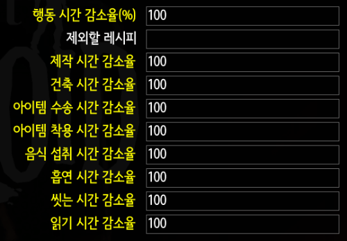 게임 내의 행동에 걸리는 시간의 속도를 설정할 수 있습니다