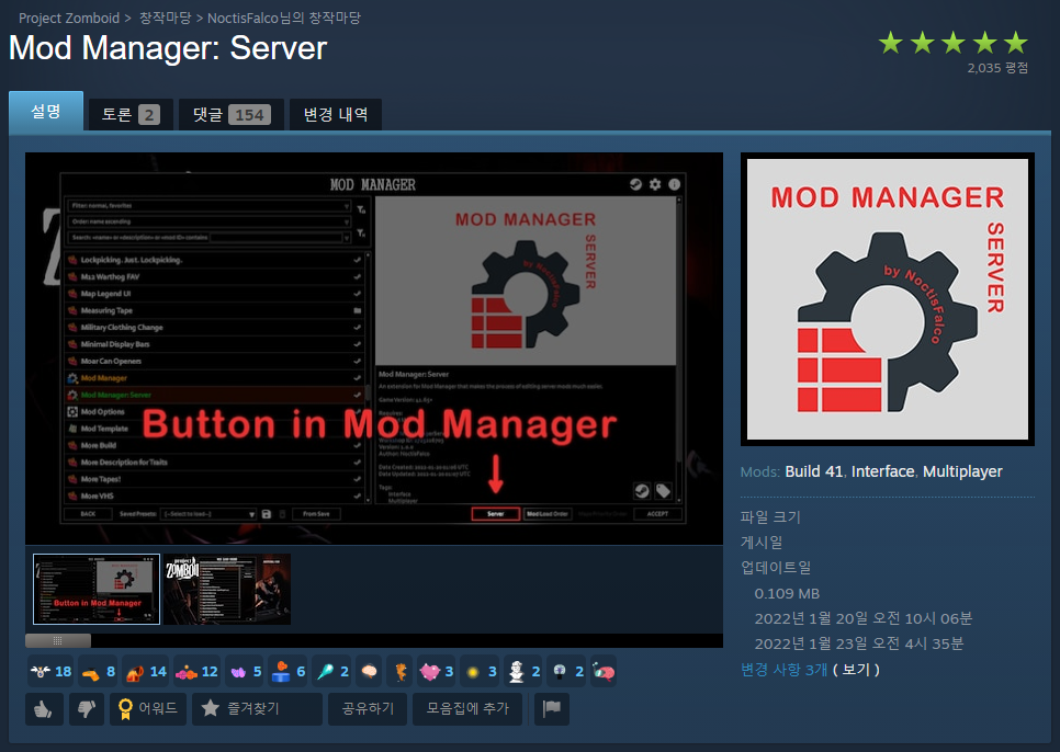 좀보이드 모드를 더 쉽게 관리할 수 있게 해주는 모드 3가지입니다