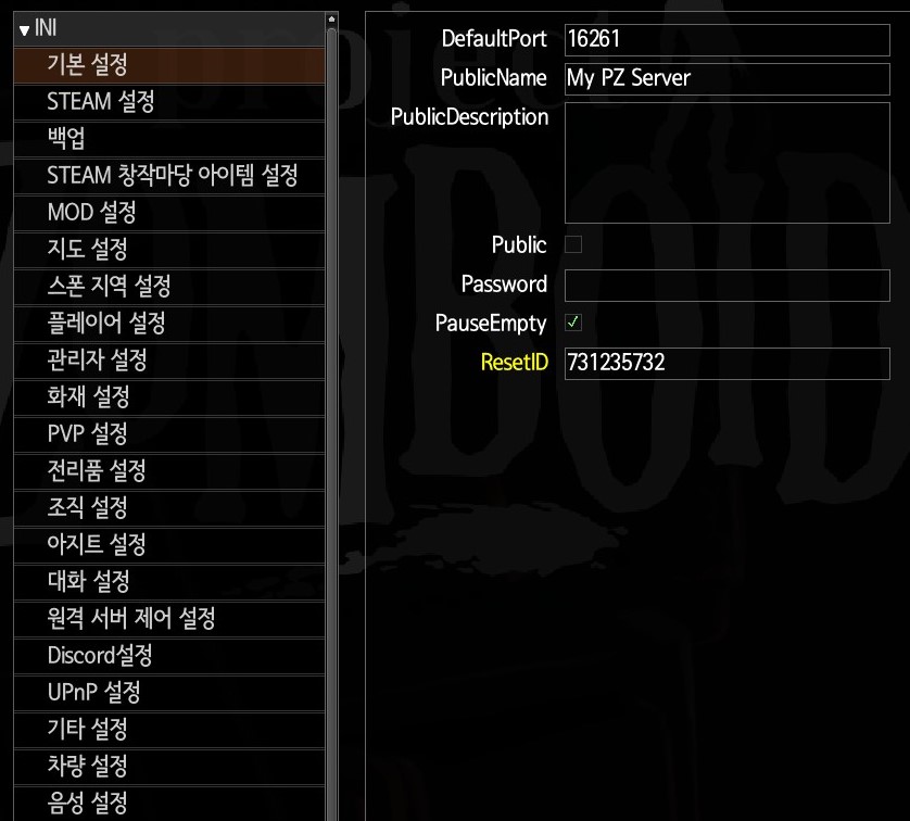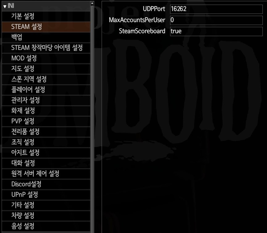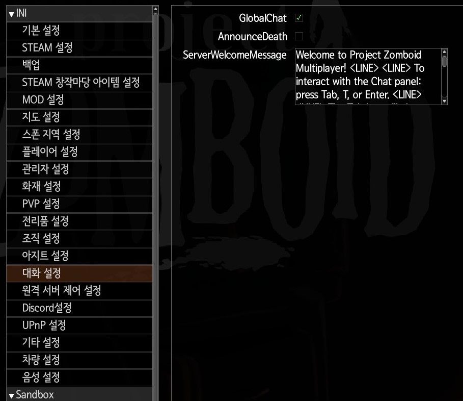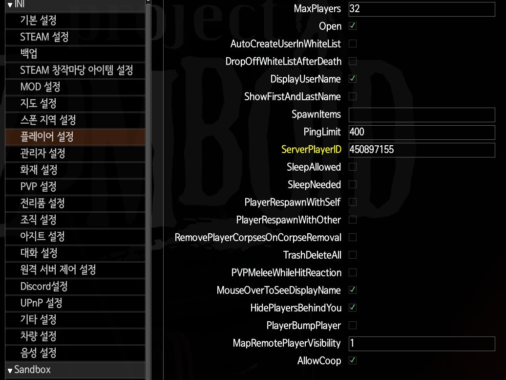 프로젝트 좀보이드에서 멀티플레이 서버 설정에 대한 설명입니다