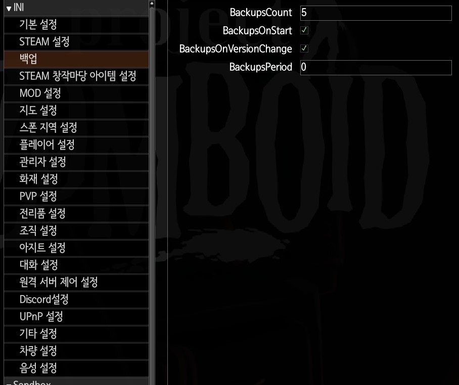 - BackupsOnStart - 서버 시작시 백업 여부를 설정함 (체크 시 백업함)